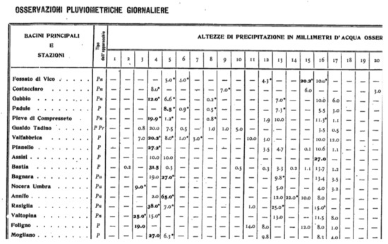 Transcription of manual recording of daily rainfall data during two decades of January 1922 for some rain gauge stations located in central Italy.