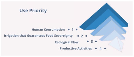 The Ley Orgánica also establishes a sectionalized system that typifies water allocation into distinct categories according to their use priority. Figure 1 illustrates these categories in the order of their prioritization under the Ley Orgánica.