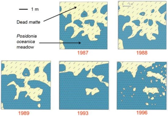 - Pergent-Martini, C.; Valette, A.; Damier, É.; Pergent, G. L’évaluation surfacique des habitats est-elle un indicateur fiable de la dynamique spatio-temporelle en milieu marin? In Proceedings of the Colloque National de Cartographie des Habitats Marins: CARAMB’AR, Brest, France, 14–16 March 2017; pp. 98–101. [Google Scholar]