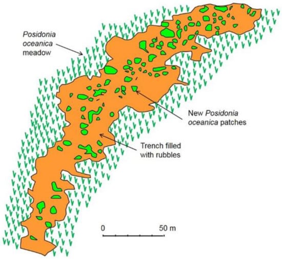 - Piazzi, L.; Balestri, E.; Magri, M.; Cinelli, F. Experimental transplanting of Posidonia oceanica (L.) Delile into a disturbed habitat in the Mediterranean Sea. Bot. Mar. 1998, 41, 593–601. [Google Scholar] [CrossRef]