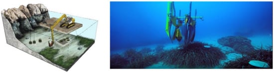 - Acunto, S.; Piazzi, L.; Cinelli, F.L.; de Biasi, A.M.; Pacciardi, L.; Ceraudo, S.; Fersini, G. Transplantation of the Mediterranean seagrass Posidonia oceanica through naturalistic engineering techniques: Value, weakness and further improvements. PeerJ Prepr. 2015, 3, e1051v1. [Google Scholar] [CrossRef][Green Version]