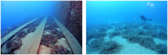 - Tomasello, A.; Pirrotta, M.; Calvo, S. Construction underwater landscape by using Posidonia oceanica transplanting combined with innovative artificial reefs. In Proceedings of the 6th Mediterranean Symposium on Marine Vegetation, Antalya, Turkey, 14–15 January 2019; Langar, H., Ouerghi, A., Eds.; RAC/SPA Publications: Tunis, Tunisia, 2019; pp. 92–97. [Google Scholar]