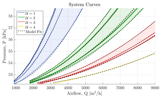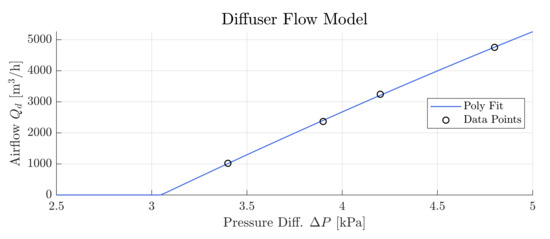 The airflow through the diffusers can therefore be described by the polynomial fit in Equation (7).