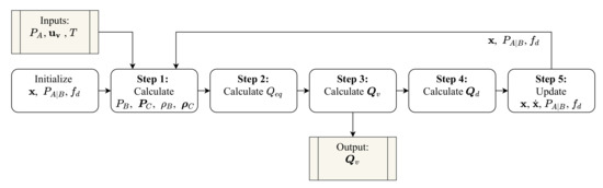 The models obtained in Section 3.1, Section 3.2, Section 3.3 and Section 3.4 are combined and referred to as the airflow distribution network. Figure 7 shows a flowchart of the algorithm used to simulate the model.