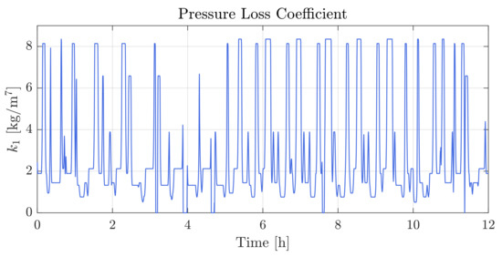 To account for pressure losses in the main supply pipe due to friction between the air and the pipe surface, friction losses are implemented in the airflow model. Friction losses in the supply pipe can be calculated based on the Darcy-Weisbach equation, applying the methodology described in [19,51]. The Darcy-Weisbach equation expresses the dynamic pressure difference from to , , due to friction in the supply pipe as: