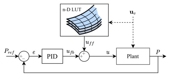 - Zurbriggen, F.; Ott, T.; Onder, C.H. Fast and robust adaptation of lookup tables in internal combustion engines: Feedback and feedforward controllers designed independently. Proc. Inst. Mech. Eng. Part J. Automob. Eng. 2016, 230, 723–735. [Google Scholar] [CrossRef]