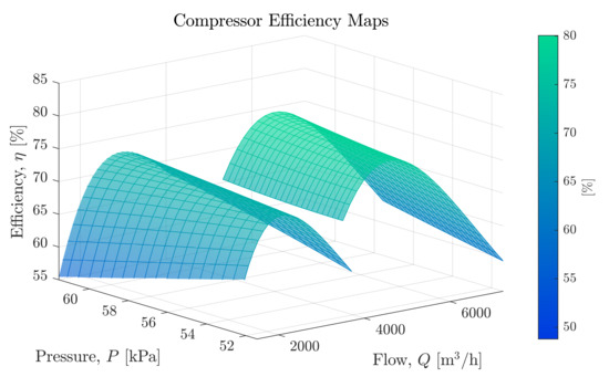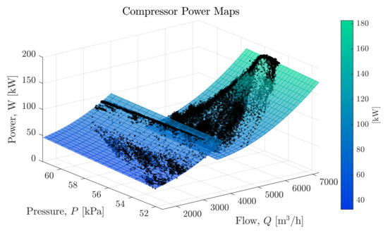 - Cortinovis, A.; Zovadelli, M.; Mercangoz, M.; Pareschi, D.; De Marco, A.; Bittanti, S. Online adaptation of performance maps for centrifugal gas compressors. In Proceedings of the 2014 European Control Conference, ECC 2014, Strasbourg, France, 24–27 June 2014; pp. 1036–1041. [Google Scholar]