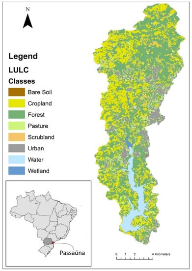 Location of Passaúna catchment in the lower left corner of the graph, and the land use/land cover of the catchment.
