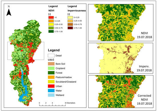 For calculation of the C Factor in this study, the Sentinel-2 data was processed, and spatial information about LULC, urban soil sealing, and NDVI was derived.