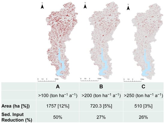 Water is the main natural erosive agent, as it is responsible for 80% of soil erosion worldwide []. Erosion has severe impacts on the aquatic ecosystems and water budget in reservoir systems. Sediment input and related nutrient flux due to erosion are the main factors deteriorating the water quality, threatening aquatic biodiversity, and reducing the lifetime of river impoundments. Therefore, soil loss is not just an issue concerning only food scarcity, but also water scarcity.