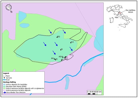 The landfill plant, actually in operation, covers an area of approximately 0.12 km2. Moreover, the study area is characterized by a series of marly and arenaceous layers, with low permeability, alternated with limestone lenses which, if fractured, can host suspended aquifers.