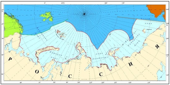 Russia’s effective baselines system has been set forth by the Resolution of the USSR Council of Ministers of 15 January 1985 that approved the “List of Geographical Co-ordinates of the Points Defining the Position of the Baselines for Measuring the Breadth of the Territorial Sea, the Exclusive Economic Zone and the Continental Shelf of the USSR” (the 1985 List) []. It uses a combination of straight and normal baselines (Figure 5). The 1985 List specifies the coordinates of the total of 431 reference points in the Arctic Ocean seas.
