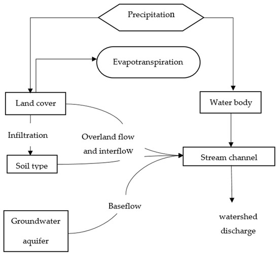 Hydrologic models are used to solve a range of specific problems in the management and development of water and land resources, including flood simulation and prediction, aquifer recharge management, runoff estimation, and drainage network design (e.g., [1,2,3]). The uncertainties inherent in these models can be reduced with the availability of accurate input and watershed data [4]. Hydrologic models include lumped models, semi-distributed models, or fully distributed models [5]. These models can also be classified based on the model formulation as empirical or physically-based models with conceptual formulations typically used in lumped models and physical equations in the other two types [6]. The parameters of the lumped models are not directly related to the watershed’s physical characteristics, which is an important shortcoming of these models [7]. Generally, the application of lumped models is limited to gauged watersheds not undergoing significant change in their conditions, and they have to be calibrated using significant observational data [7].