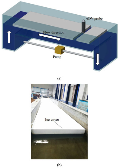 Most rivers at high altitude in cold northern regions always freeze in the winter and form ice sheets. The ice sheet in some Canadian rivers is at least 0.6 m thick and lasts for at least 4 months [1]. The wetted perimeter of the cross section and flow resistance in ice-covered flows increases with the presence of the ice sheet, which significantly affects the hydraulic characteristics of river and topographical features and greatly change the flow velocity distribution, flow transport capacity and sediment transport rate [2,3,4,5,6,7,8,9,10,11]. Therefore, it is necessary to study the ice-covered flows.