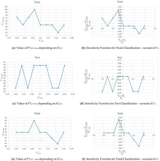 Figure 9. Values of F*j,0.30-Train, F*j,0.30-Test, and F*j,0.30-Total and sensitivity function for the scenario with k*0.30.