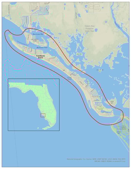A map of Fort Myers Beach with the study area outlined.