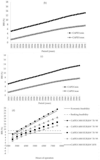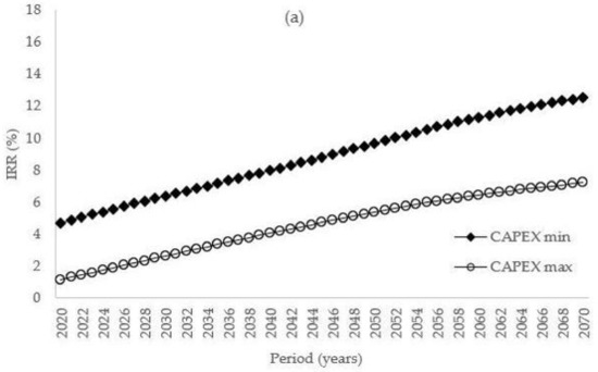 3.5.2. Analysis 2: IRR Evolution over the Period 2020–2070