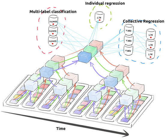 The pattern of scores over regions was clearly very similar for multivariate and univariate models; indeed, the Pearson correlations between the observed values were 0.975, 0.982, and 0.971 for MAE, DTW, and TEEE, respectively. Nevertheless, the multivariate models were systematically better, as evidenced by the averages in the last row of the table. Out of 18 regions, the univariate approach was better only in 5, 6, and 8 of them, for MAE, DTW, and TEEE, respectively. According to the conservative Wilcoxon signed-rank test, the differences were significant at 0.1 level for MAE and DTW (p-values of 0.064 and 0.09, respectively). This corroborates our rationale expressed in Section 3.2, i.e., that multivariate neural models can capture the inter-cell patterns and thus offer better quality of hindcasting. Therefore, in the following, we focus exclusively on multivariate models.