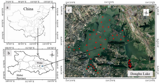 The map of China (a), the map of Hubei Province (b) and the sampling points distribution in Donghu Lake (c).