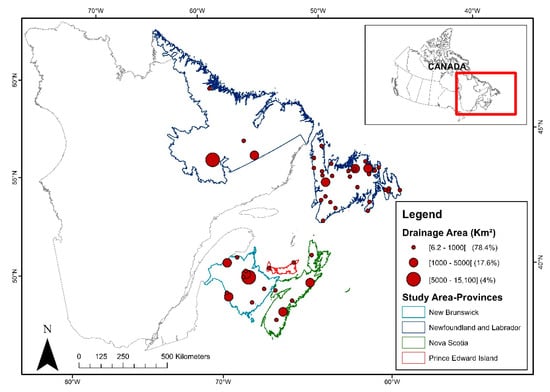 Among the 52 stations, the 7Q2 and 7Q10 resulted in the highest water temperature in 20% of the stations, mostly in the province of Newfoundland and Labrador (the largest island in