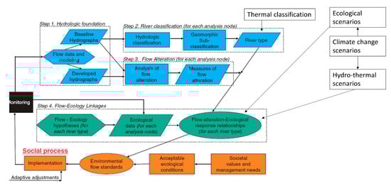 49]. Step 4 is where flow-ecology relationships are defined, and hypotheses on the impact of altered flow on ecological functions are constructed. These steps inform stakeholders and/or regulatory agencies who are ultimately responsible for the decision and implementation of an eflow regime.