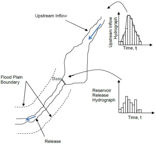 Flooding is a critical issue around the world, and the lack of comprehensive knowledge of watershed hydrology and tools for the real-time operation of river-reservoir systems can result in a lack of lead-time for flood warning and expensive harm to property as well as life. Extreme rainfall, dam breaches, and snowmelt can result in flows exceeding the capacity of the river-reservoir system, resulting in inundation of land downstream. Floods affect millions of people and their properties all over the world. Over the years, humans succeeded partially in diminishing the effect of floods by constructing dams on rivers, and they developed these structures to control flood water by adding more facilities. Flood management includes planned management and real-time management. The modeling approach developed herein focuses on the real-time management of river-reservoir systems (see Figure 1). Real-time flood management requires real-time inflow data to determine releases from control facilities. Sometimes, inflow data may not be available during the event, so forecasting the required data for the short-term depending on the availability is required. The modeling approach focuses on the flooding caused by large rainfall events that require immediate responses in real-time. Flood forecasting studies endeavor to produce, as accurately as possible, future estimates of discharges from a reservoir-river system based on the present state, forecasted rainfall, and the past behavior of the river-reservoir system (Mays [1]).