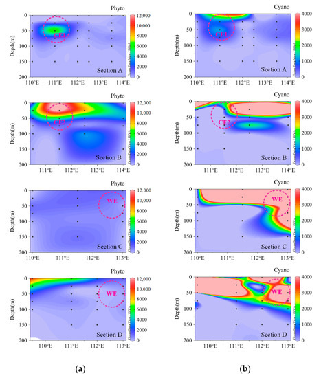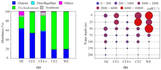 - Li, X.; Sun, J.; Tian, W.; Wang, M. Phytoplankton community in the northern area of South China Sea in summer of 2009. Mar. Sci. 2012, 36, 33–39. (In Chinese) [Google Scholar]