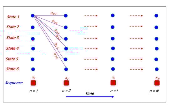 - Elliott, R.J.; Aggoun, L.; Moore, J.B. Hidden Markov Models: Estimation and Control. In Applications of Mathematics; Springer: New York, NY, USA, 1995; p. 361. [Google Scholar]