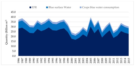 Contribution of EFR, non-utilized blue surface water, and crop water consumption in Peshawar Basin (1986–2015).