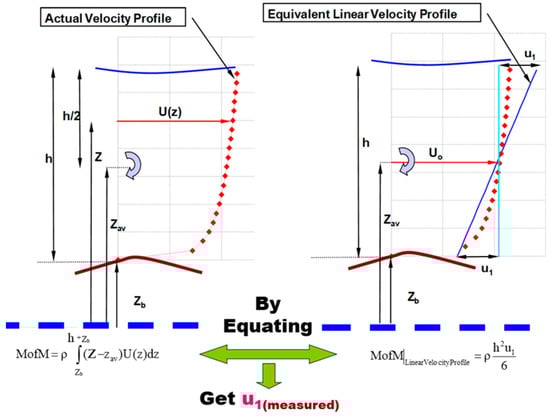 Following this idea, a new integral velocity scale, u1, is defined and calculated using Equation (4). A special case of Equation (4) is Equation (5), which gives the value of u1 in the case of uniform flow where the velocity profile could be assumed to be a logarithmic relation.