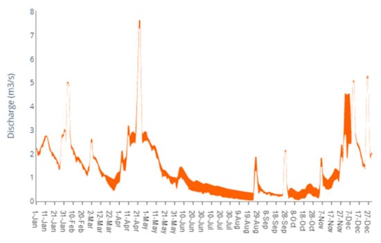 Despite the fact that real-world daily river discharges can greatly fluctuate around the daily average discharge values within each scenario that we considered in the optimization assessment, this is mostly due to less predictable (in the long term) factors such as precipitation and temperature. Forecasting the exact discharge value occurring on a specific day with the aim of planning daily diversion is still challenging. A simple approach to tackle this issue is the consideration of representative discharge patterns throughout the year. In this study, the produced hydrological scenarios (or hydrographs) were intended only as a basis for exploration and discussion about potential decisions and management practices rather than absolute discharge values. Hence, a key assumption underlying the input hydrological data (hydrographs in Figure S1 in the Supplementary Materials) was that it serves as a representative “sample” of the current hydrological conditions at the daily scale for each considered scenario.