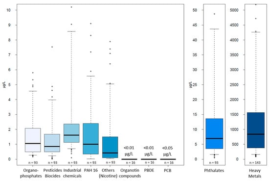 The phthalate DEHP was detected at significantly lower concentrations than in the US by Pitt et al. (2004), as well as in France by Zgheib et al. []. This may be explained by a shift in plasticizer use from DEHP to DIDP + DINP, as reported by Bartolomé et al. []. As a consequence, the concentration in DEHP is likely to decrease with every year, following the replacement of plasticizers.