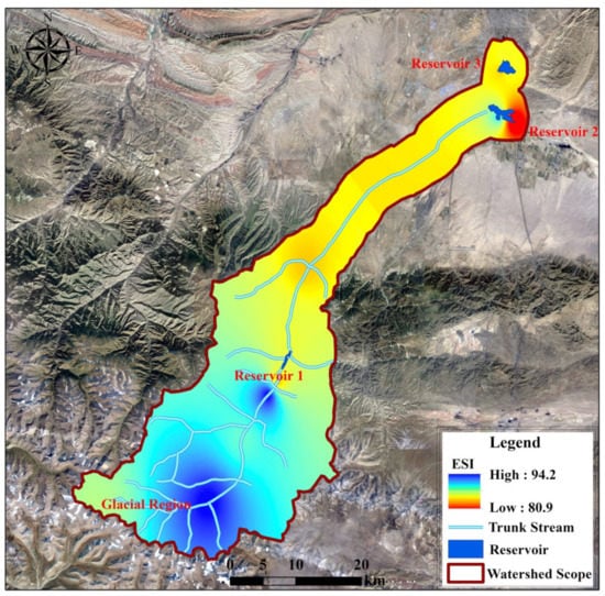 Through evaluation of the SEEC model, it was determined that the ESI value of the study area is 80.9–94.2. In accordance with the geographical characteristics, the watershed was divided into three sections: