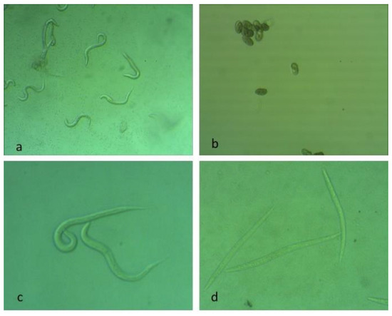 - Subhash, S.; Kuruvelil, A.B.; Aswathi, P.V.; Deepasree, K.; Navyamol, C.D.; Das Pv, N.; Prasad, P.; Nair, B.; Pal, S. Screening of nematicidal activities of biocontrol fungi aspergillus Niger and penicillium oxalicum using caenorhabditis elegans as model. Pollut. Res. 2018, 37, S121–S127. [Google Scholar]