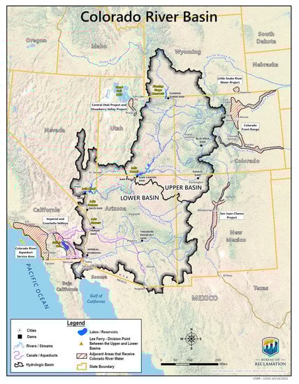 - MacDonnell, L. Sources of Controversy in the Law of the Colorado River: An Upper Basin View. Available SSRN 3874212. 2021. Available online: https://papers.ssrn.com/sol3/papers.cfm?abstract_id=3874212 (accessed on 13 December 2021).