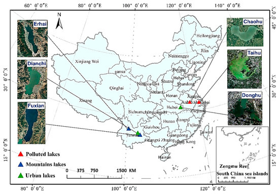 - Wu, P.; Shen, H.; Cai, N.; Zeng, C.; Wu, Y.; Wang, B. Spatiotemporal analysis of water area annual variations using a Landsat time series: A case study of nine plateau lakes in Yunnan province, China. Int. J. Remote Sens. 2016, 37, 5826–5842. [Google Scholar] [CrossRef]