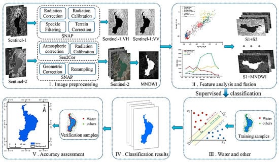 - Saghafi, M.; Ahmadi, A.; Bigdeli, B. Sentinel-1 and Sentinel-2 data fusion system for surface water extraction. J. Appl. Remote Sens. 2021, 15, 014521. [Google Scholar] [CrossRef]