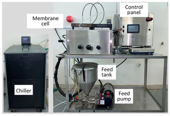 The flux (Ji) (kg/h·m2) (Equation (1) was calculated by the ratio of the permeate mass flow (mp) to the membrane surface area (A).