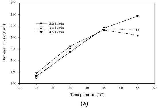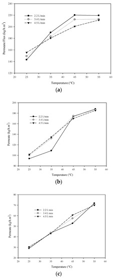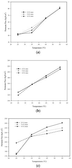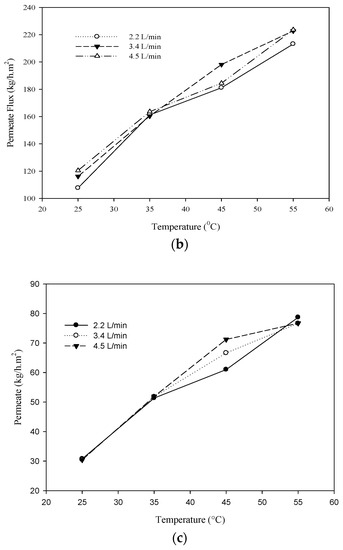 3.2. Permeate Flux under Different Temperatures and Feed Flow Rates