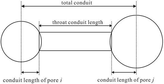 where gi, gj, and gt,ij are hydraulic conductivities for pore i, pore j, and the throat connecting pores i and j, respectively. For each part of the conduit, the hydraulic conductivity is calculated by: