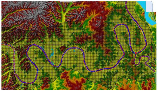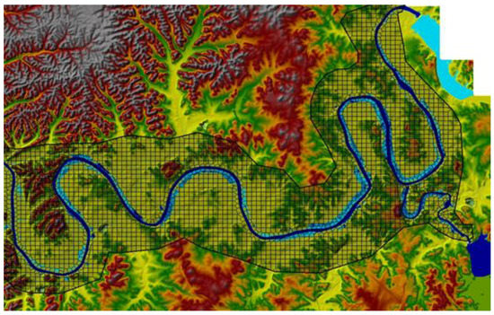 The approximate watershed area of the Cumberland River system modeled in the USACE HEC-HMS model is 14,160 mi2. The modeled watershed area included head waters of the basin starting in Lechter County, KY, USA, downstream to Cheatham Dam (approximately 30 miles downstream of Nashville). The HES-HMS input was developed by the U.S Army Corps of Engineers (USACE), and consists of 66 reaches and 69 basins. The HEC-HMS was calibrated by the USACE, and validated for the May 2010 storm event by Che [25], who compared the simulated and the observed Dale Hollow reservoir inflow hydrographs for the May 2010 storm event. The USACE one-dimensional HEC-RAS unsteady flow model of the Cumberland River system consisted of 675 cross sections, 8 inline structures, 117 lateral structures, and 1 bridge. Not all the cross-sections and inline structures were modeled herein, as indicated by Figure 6. The USACE calibrated their model, and Che [25] validated the 1D unsteady flow model for the May 2010 storm event using the USACE calibrated values of Manning’s roughness coefficients, and expansion and contraction coefficients. The two-dimensional diffusion wave model built herein was based on the USACE roughness coefficients and other parameters.