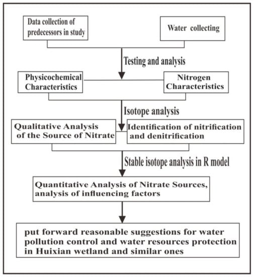 This study took the whole Huixian wetland basin as the research object, which has not been done before. Secondly, this study not only discussed the surface river water and groundwater in the study area, but also the artificial fish ponds which have a great impact on the wetlands. Thus, reasonable suggestions are put forward for water pollution control and water resources protection of Huixian wetland and similar wetlands. This study focused on: (1) revealing the characteristics of nitrogen pollution in Huixian wetland; (2) exploring the NO3− transformation of nitrogen in the study area; and (3) calculating the contribution ratio of different inputs of NO3− in Huixian wetland.