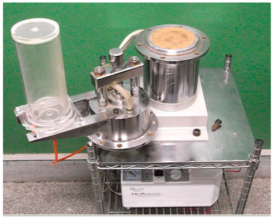 The structure of the testing device is presented in Figure 1. The rigid cutting ring system mainly consisted of a screw, a beam, a plunger, a porous disc, a cutting ring, and a cutting pedestal. The porous disc, cutting ring, and cutting pedestal were rigid. The positions of the beam and the cutting pedestal were fixed. The top cutting ring secured the position of the porous disc by fastening a screw to form a rigid cutting ring system with a fixed position. The main function of this system was to maintain the constant volume of the soil sample. Simultaneously, the screw, beam, plunger, and porous disc constituted the preloading system. The cutting ring and its surrounding parts as well as the rubber mat constituted the sealing system of the device. The vacuum saturation system was composed of the vacuum pump and the connecting pipe. Its main function was to control the saturation state of the soil sample in the cutting ring through the exhaust process of the vacuum pump. The measurement acquisition system consisted of an earth pressure sensor and an externally connected digital display. The former could directly measure the pressure on the earth pressure cell, and the data could be directly read by an externally connected digital display. The actual expansive force of the expanding soil could be calculated.