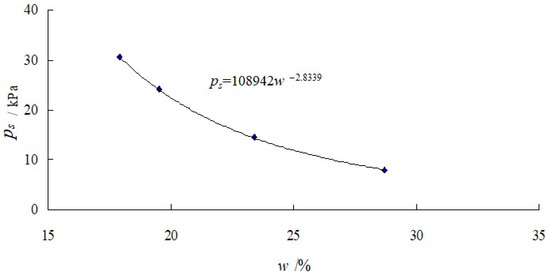 According to the measured expansive force under different initial water contents in Figure 2, the equivalent expansion force was obtained by finding and determining the maximum expansion force, and the relation curve between the equivalent expansive force (ps)and initial water content (w) is illustrated in Figure 6.