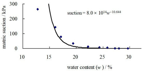 An effective segment of the soil and water characteristic curve of the expansive soil under humid conditions is shown in Figure 7. Therefore, a section of the fitting curve between the water content and matric suction is shown as follows: