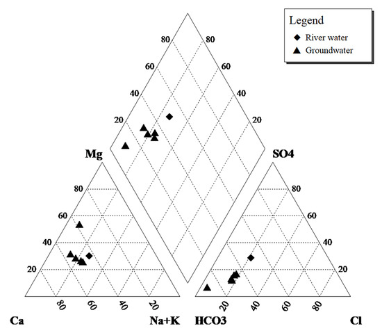 Piper diagram of river water and groundwater samples.