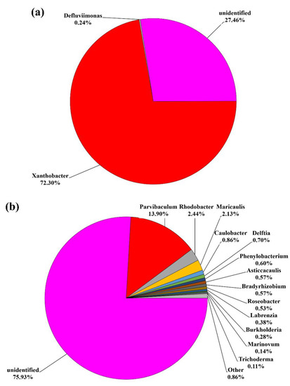 Species composition containing the As(III) oxidizing gene (a) aioA and (b) arxA in the genus-level (Other: the summation of the bacteria, of which the relative abundance was considerably below 0.1%).