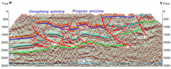 Seismic interpretation profile of L2. (F6: Pengshui–Jianshin fault).
