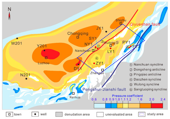 Coefficient of formation pressure in and around the Sichuan Basin (revised from reference [14]).