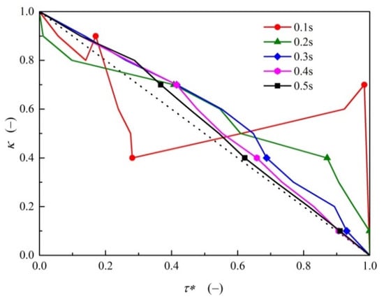 With the introduction of the unsteady friction term caused by the compression–expansion effects, the modified unsteady friction loss expressing the energy dissipation term can be written as Equation (5), where the detailed derivation is given in []: